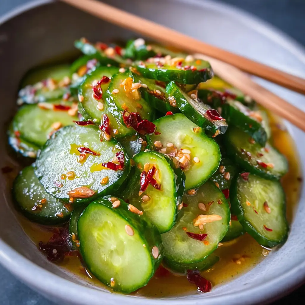 Das Beste an diesem Rezept ist seine Einfachheit. Keine komplizierten Zutaten, keine langen Vorbereitungszeiten, kein Herd notwendig. Gurken werden mit einem aromatischen Dressing aus Sesamöl, Reisessig, Knoblauch und Chili vermengt – und das Ergebnis ist ein Salat, der frischer und leckerer ist als alles, was du je in einem Asia-Restaurant bestellt hast. Für alle, die auf gesunde Ernährung setzen und gleichzeitig keine Zeit in der Küche verschwenden möchten, ist dieses Rezept ein absolutes Muss.