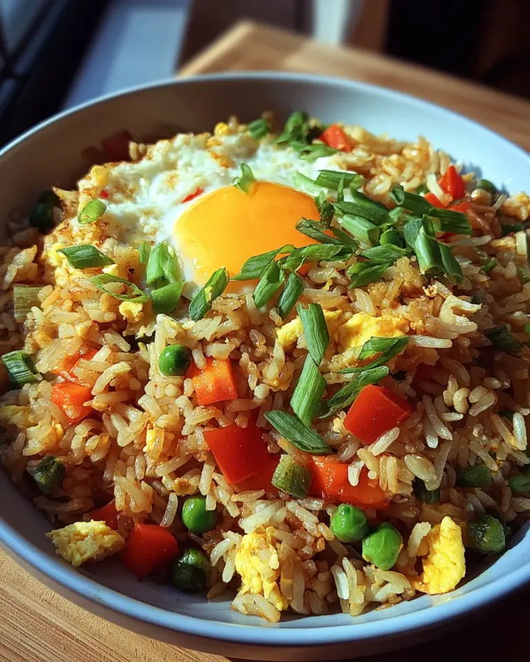 - Präsentation: Servieren Sie den Bratreis in einer minimalistischen, tiefen Schale. Die bunten Kontraste des Gemüses unterstreichen Ihren Sinn für Design und Küchenorganisation.