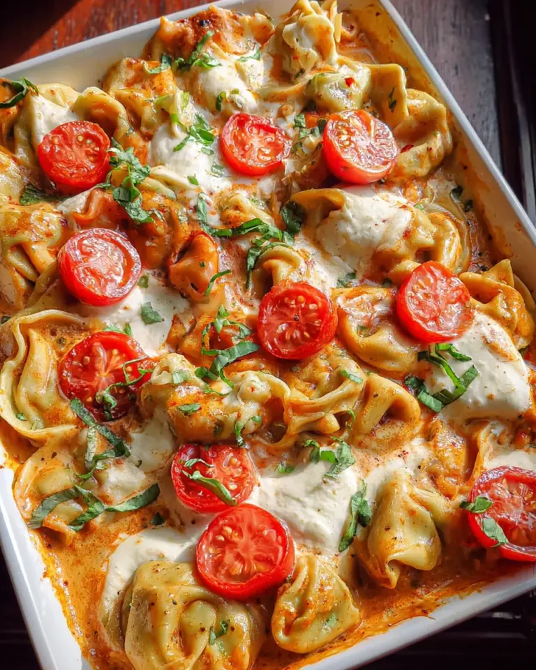 Achten Sie darauf, dass die Tortellini vollständig von der Sauce bedeckt sind. Falls die Sauce während des Backens zu stark reduziert, können Sie einen kleinen Schluck Wasser oder Gemüsebrühe hinzufügen – eine einfache Maßnahme zur Werterhaltung der Konsistenz.