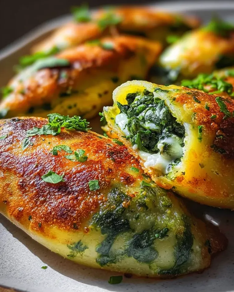 Vegane Kartoffeltaschen mit Spinat-Frischkaese-Fuellung